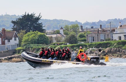 All aboard “Billy Goat,” our Gold Standard RIB, powering across Dublin Bay with a powerful 300hp engine.